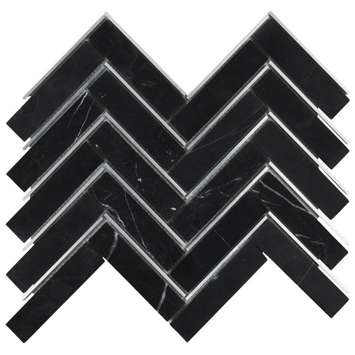 TDH555 Black Marble Silver Metal Trim Mosaic Tile