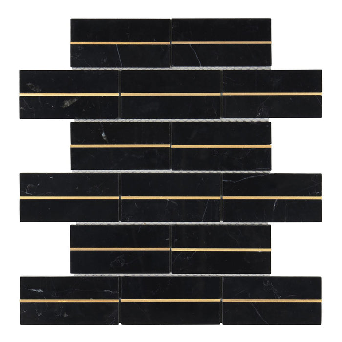 TDH581 Black Marble Gold Metal Trim Mosaic Tile