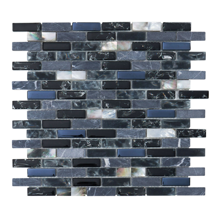 TDH9MDR Black Gray Glass Stone Mother of Pearl Interlocking Mosaic Tile