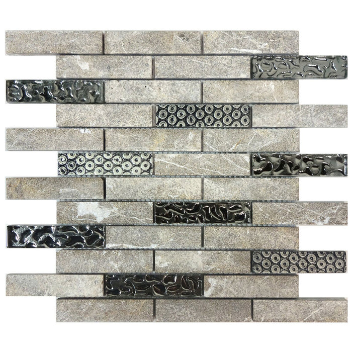 TDH136MO Gray Textured Stone Blended with Silver Glass and 3D Décor Mosaic Tile