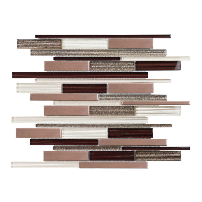 TDH48MDR Burgundy Red Beige Rose Gold Glass Metal Stainless Steel Linear Interlocking Mosaic Tile