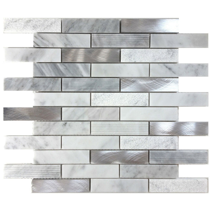 TDH209MO White Carrara Marble Stone Blended with Aluminum and Texture Stone Mosaic Tile