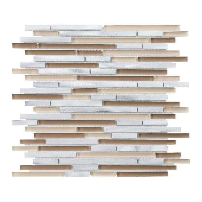 TDH39MDR Beige Glass Aluminum Metallic Linear Interlocking Mosaic Tile