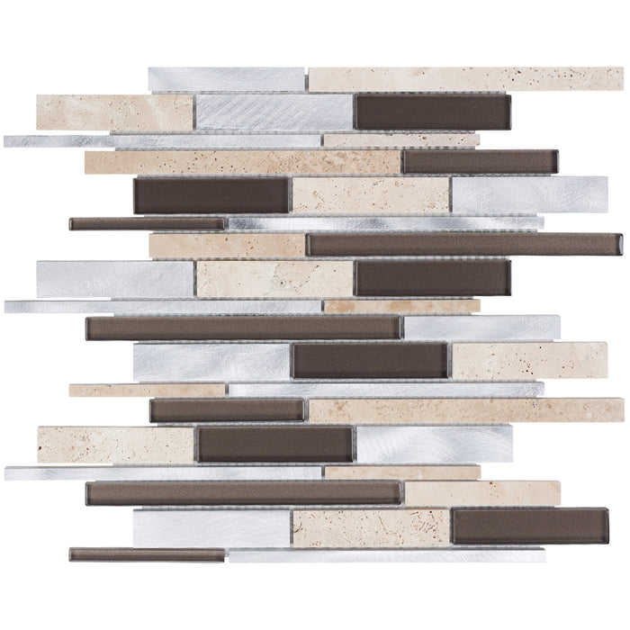 TDH435AL Aluminum Natural Stone Crystal Glass Beige Brown Silver Metallic Metal Mosaic Tile