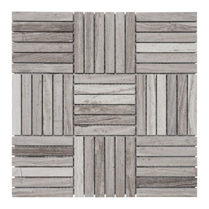 TDH349NS Natural Stone White Oak Marble Taupe Gray Mosaic Tile
