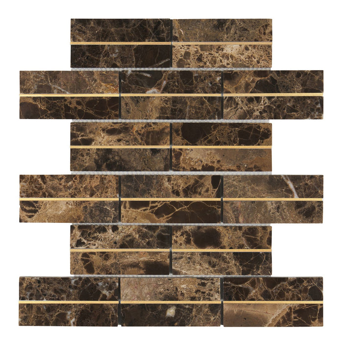 TDH567 Brown Emperador Gold Metal Trim Mosaic Tile