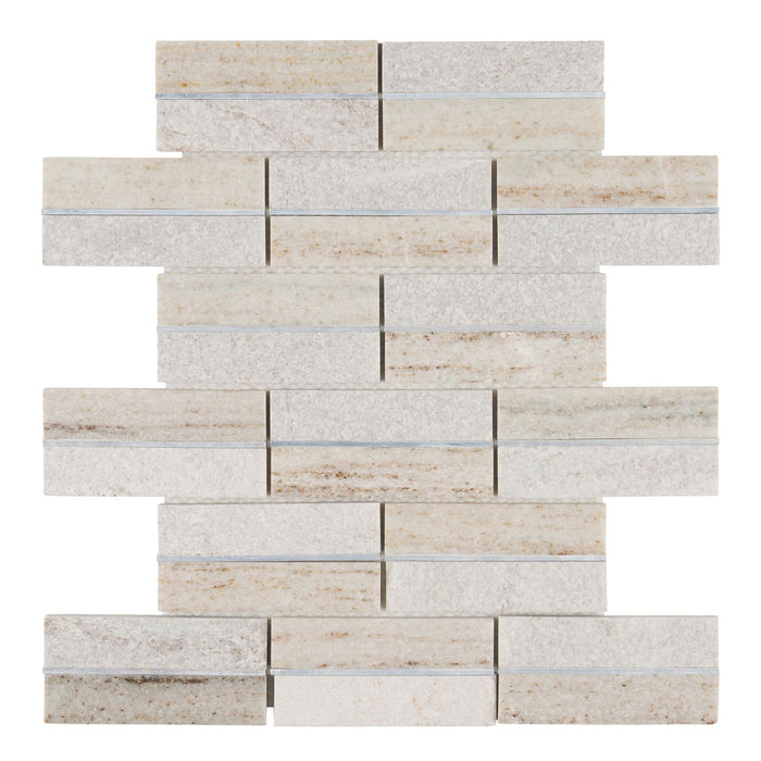 TDH569 Gray Quartzite Silver Metal Trim Mosaic Tile