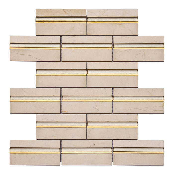 TDH591 Crema Marfil Natural Stone Gold Metal Trim Mosaic Tile