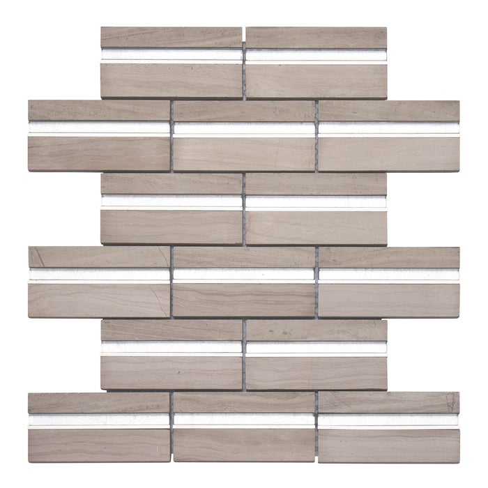 TDH592 White Oak Natural Stone Silver Metal Trim Mosaic Tile