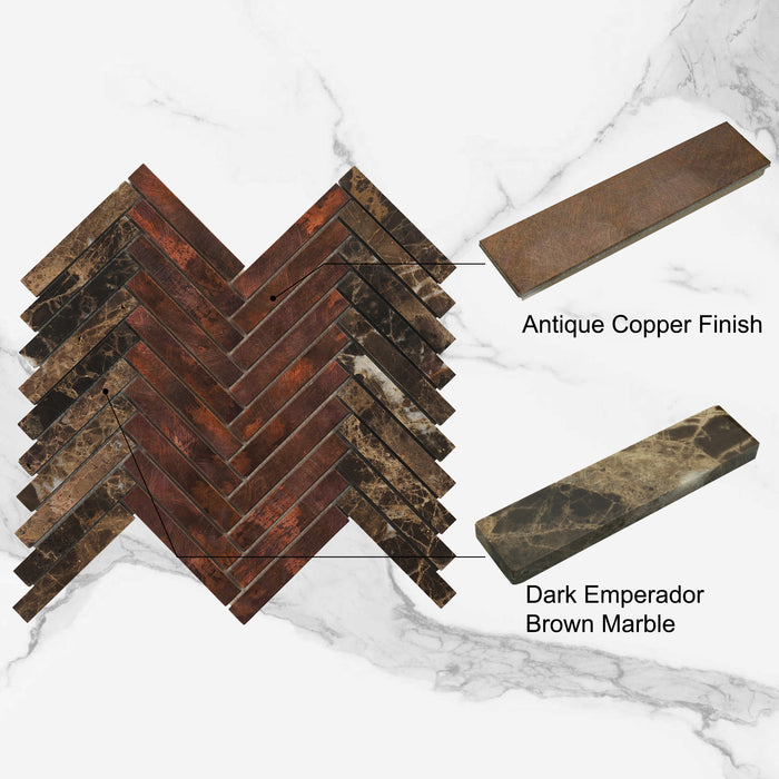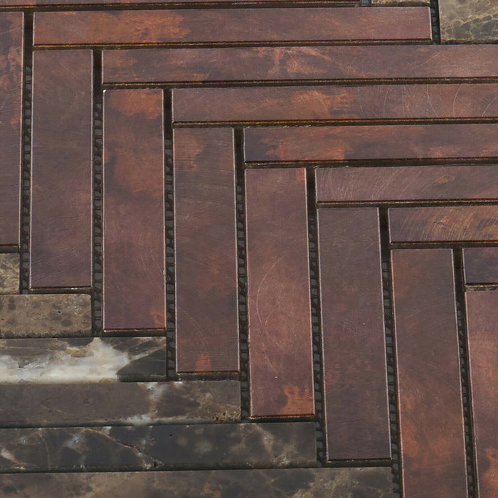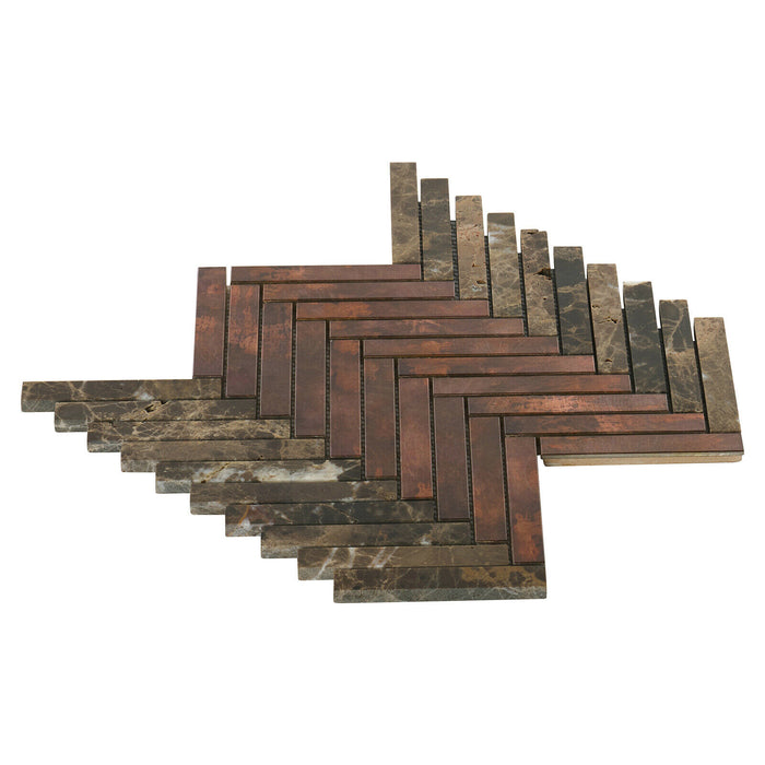 TDH394AC Antique Copper Natural Stone Emperador Brown Metallic Metal Mosaic Tile