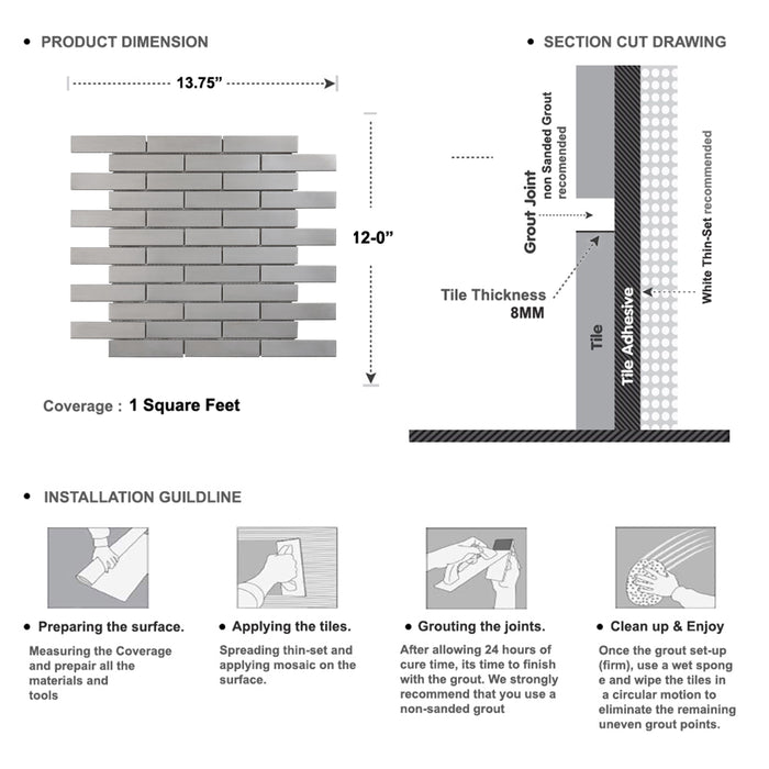TDH251SS Stainless Steel Brushed Nickel Gray Metallic Metal Mosaic Tile