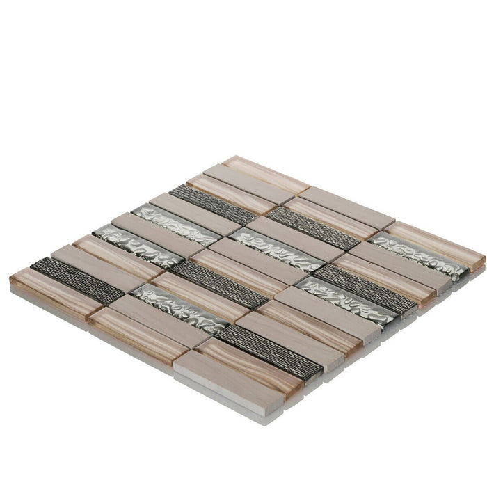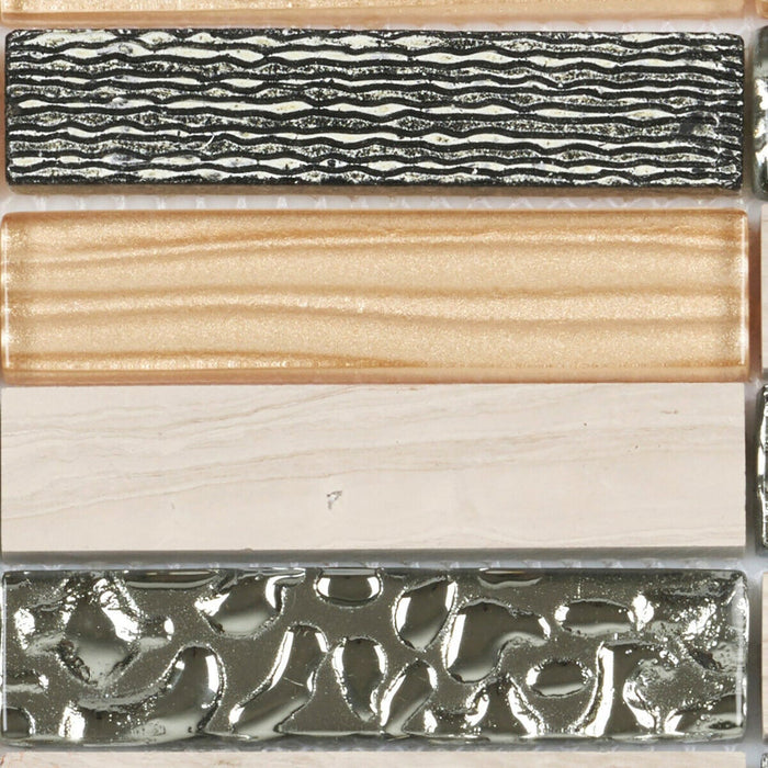TDH35MO Crystal Glass Natural Stone 3D Art Deco Beige Mosaic Tile
