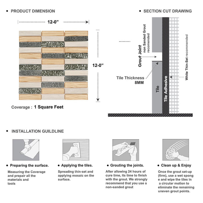 Sq. Ft.I know the size of the area I want to tile. Calculate the number of tiles I need to order: