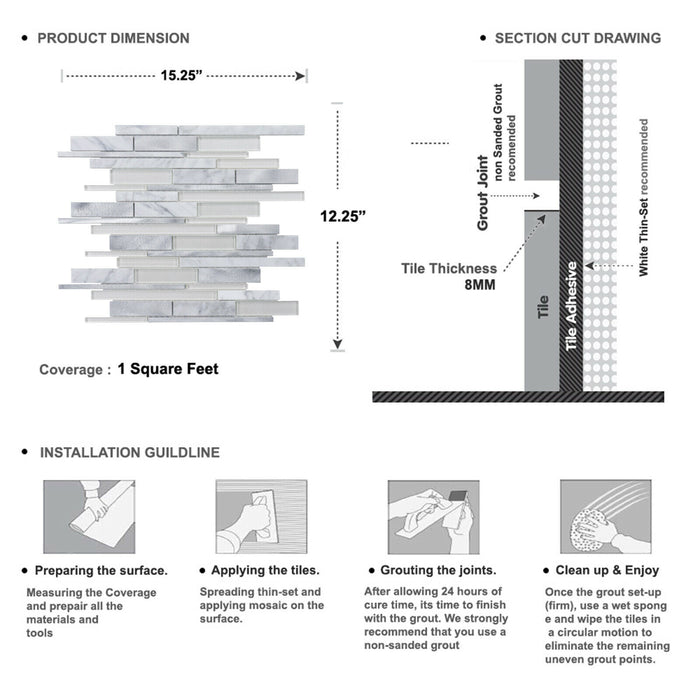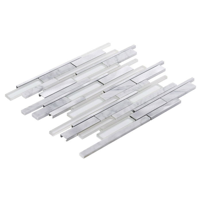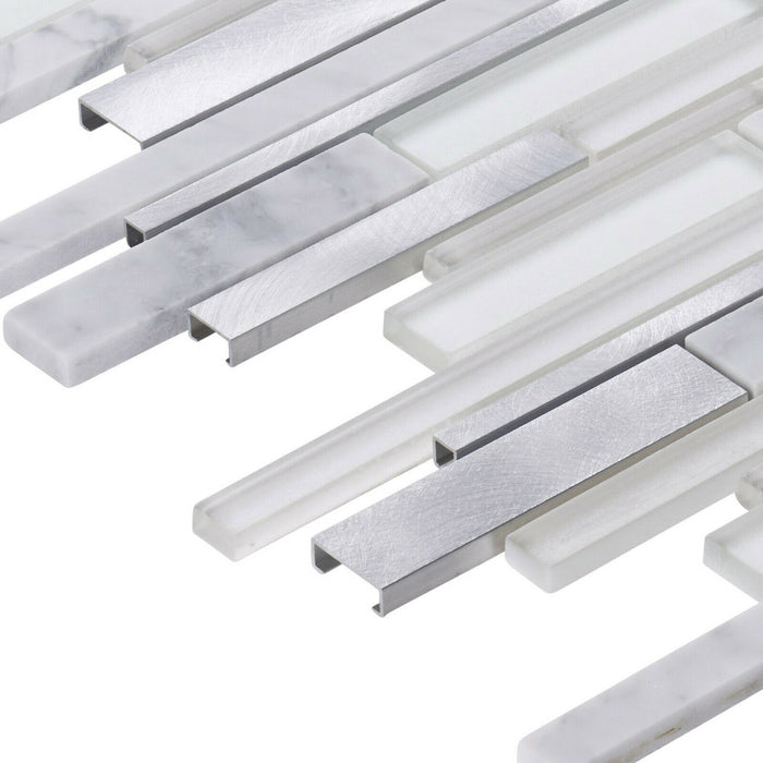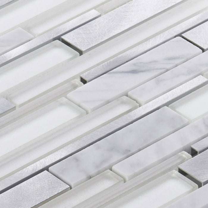 TDH434NS Aluminum Natural Stone Glass Carrara White Silver Metallic Metal Mosaic Tile