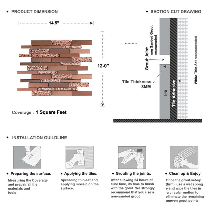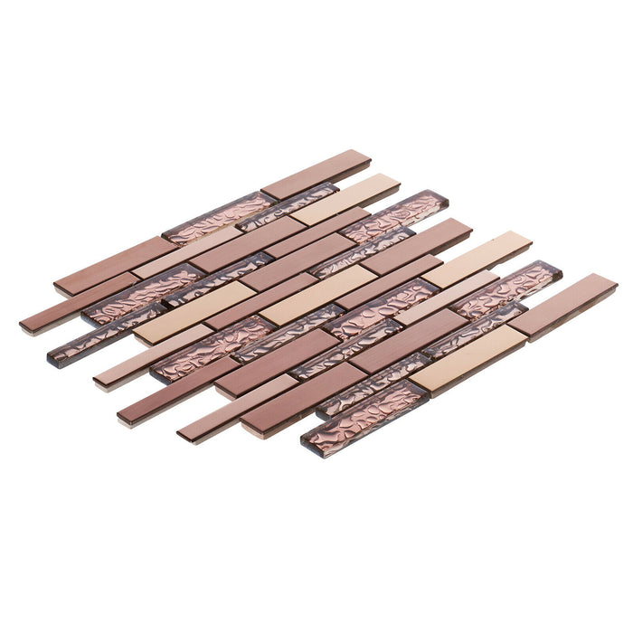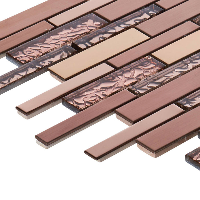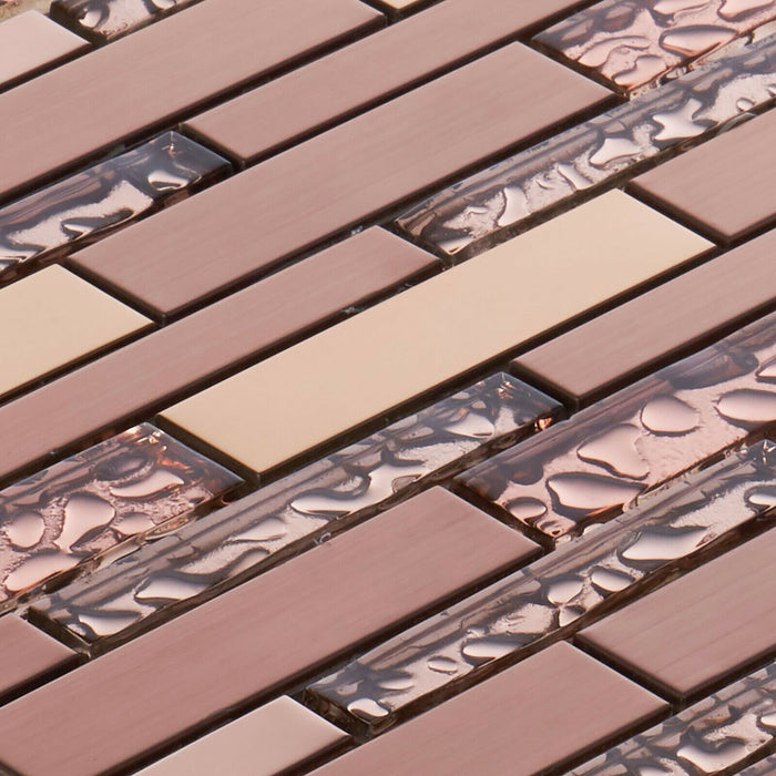 TDH489RG Stainless Steel Crystal Glass Rose Gold Copper Metallic Metal Mosaic Tile