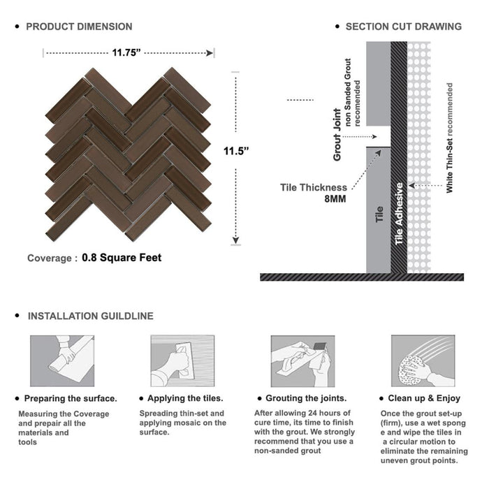 TDH73MO Crystal Glass Brown Mosaic Tile