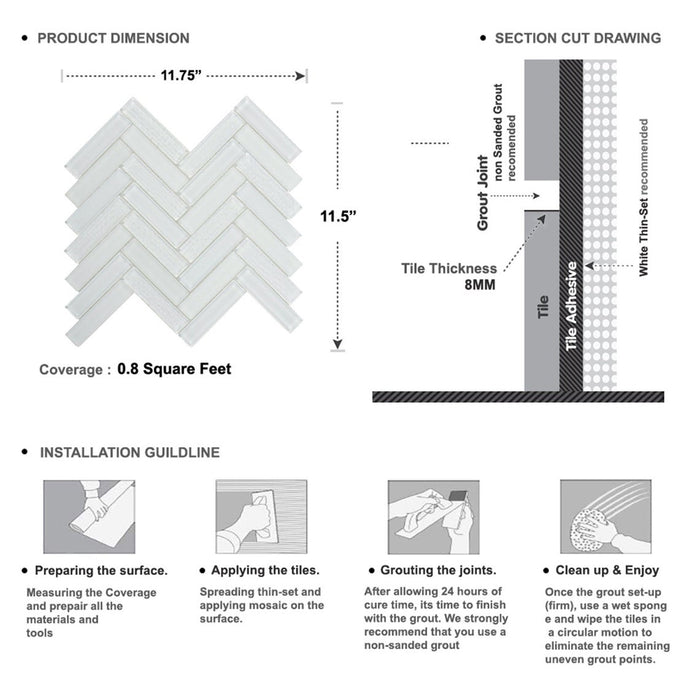 TDH89MO Crystal Glass White Mosaic Tile