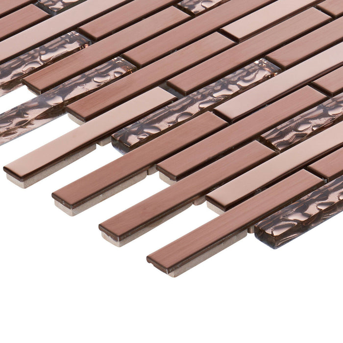 TDH324RG Stainless Steel Glass Rose Gold Copper Metallic Metal Mosaic Tile