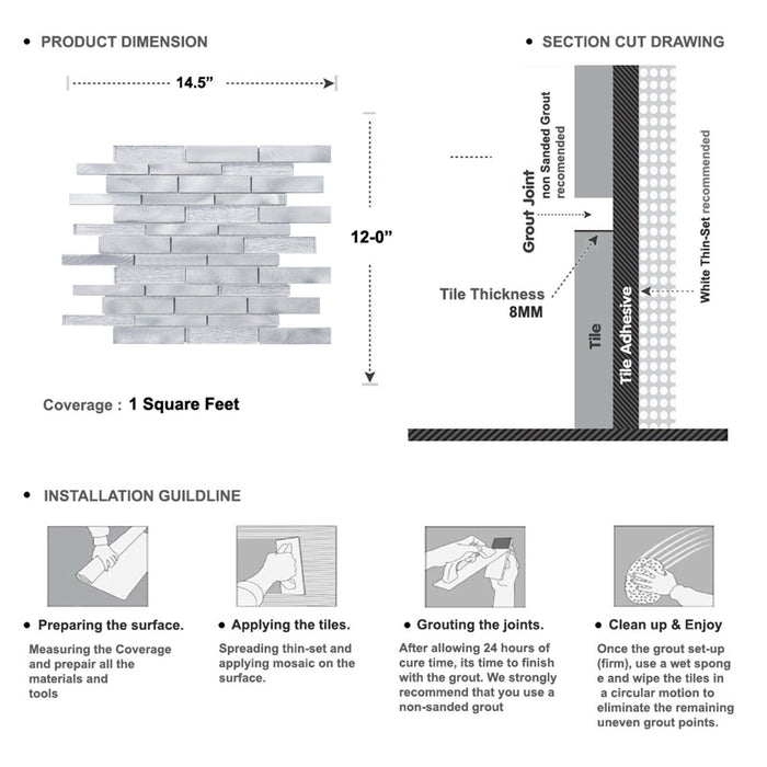 TDH487AL Aluminum Crystal Glass White Silver Mosaic Tile