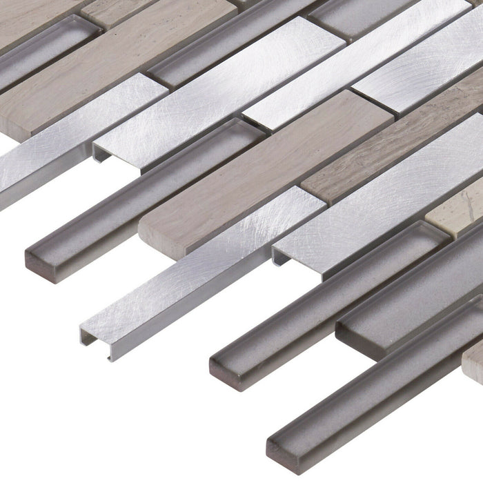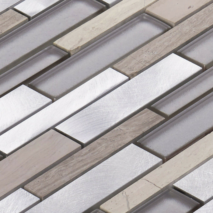 TDH500AL Aluminum Natural Stone White Oak Marble Glass Taupe Gray Silver Metallic Mosaic Tile