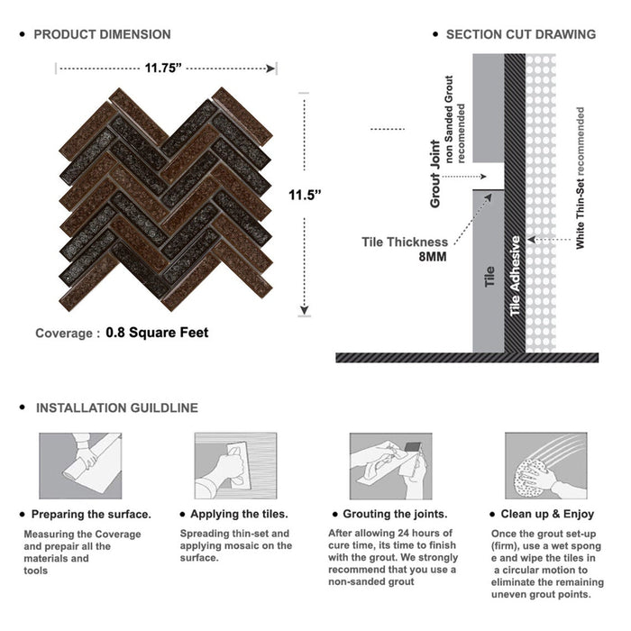 TDH170MO Crackle Glass Brown Mosaic Tile