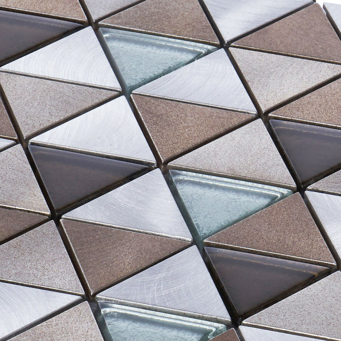 TDH63MDR Brown Gray Aluminum Metallic Crystal Glass Triangle Mosaic Tile