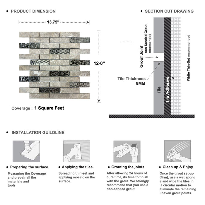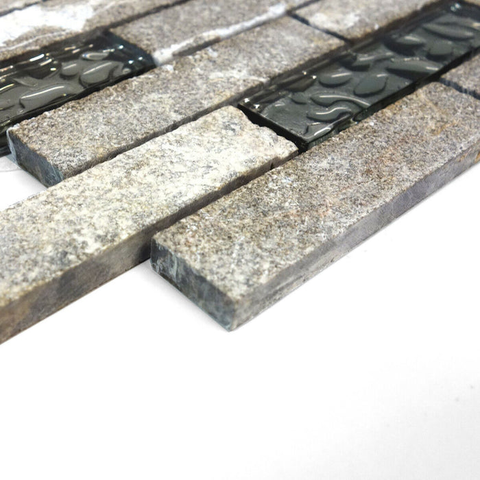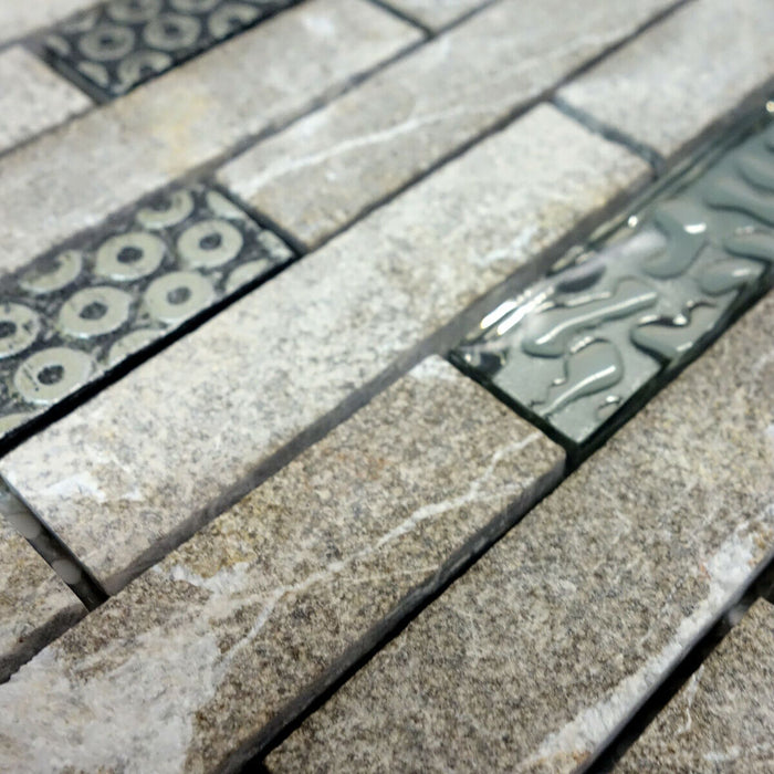 TDH136MO Gray Textured Stone Blended with Silver Glass and 3D Décor Mosaic Tile