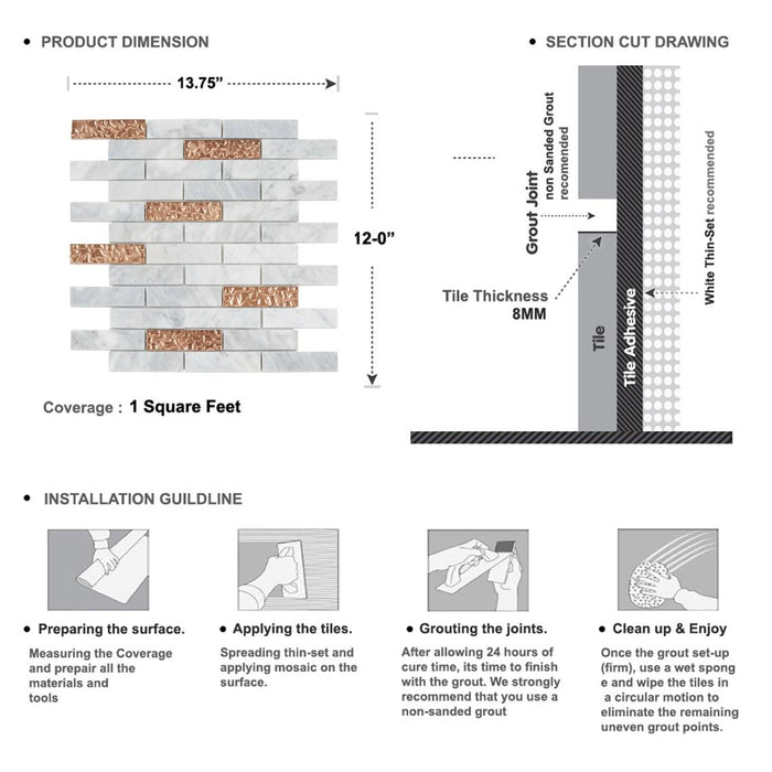 TDH145MO Natural Stone Glass Carrara White Marble Mosaic Tile