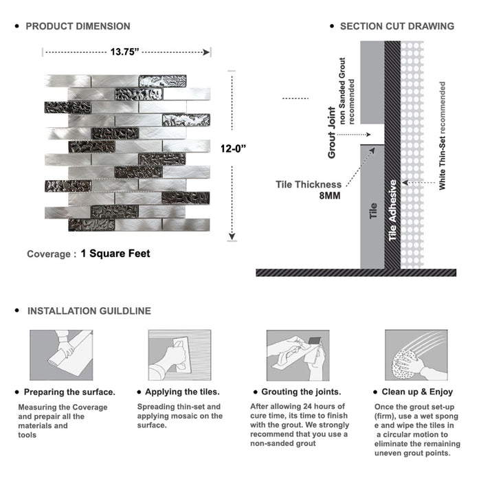 TDH205MO Aluminum Blended with Silver Glass Mosaic Tile