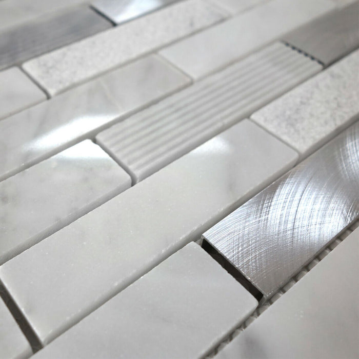 TDH209MO White Carrara Marble Stone Blended with Aluminum and Texture Stone Mosaic Tile