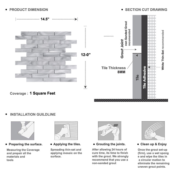 TDH260AL Aluminum Metal Silver Metallic Mosaic Tile