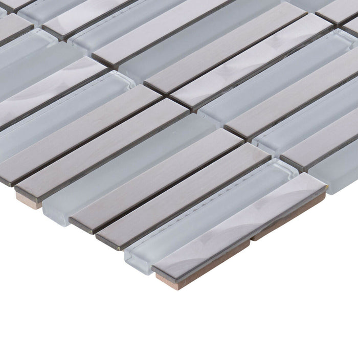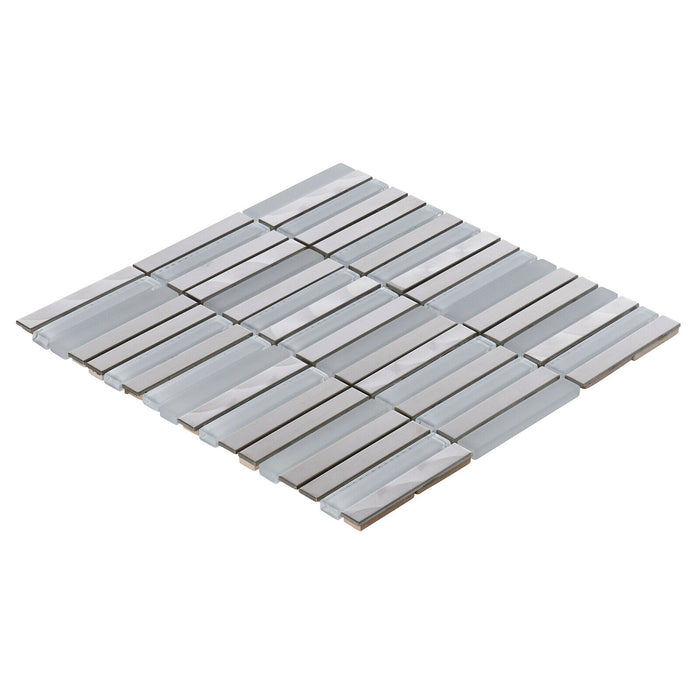 TDH297SS Stainless Steel Jeweling Crystal Glass White Silver Metal Metallic Mosaic Tile