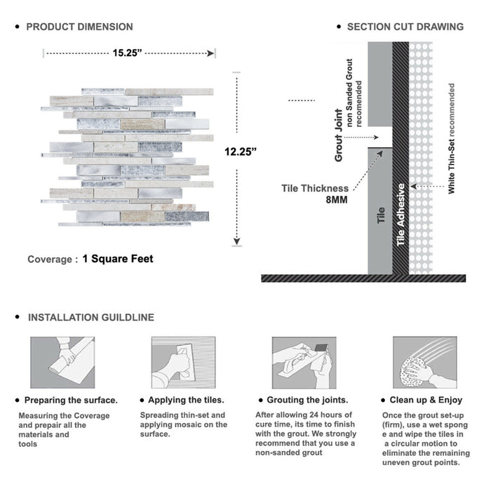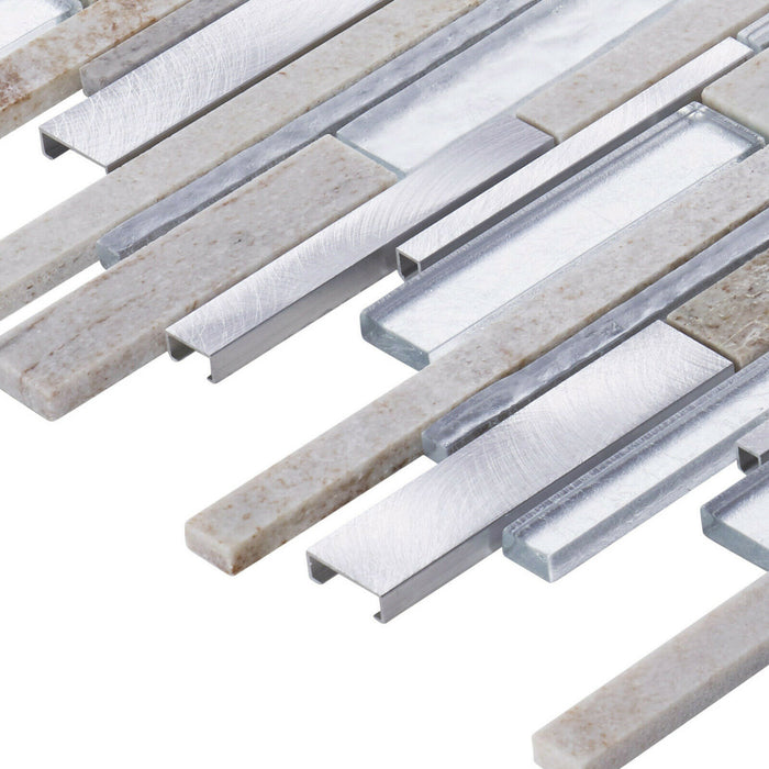TDH436AL Aluminum Natural Stone Crystal Glass Gray Silver Metallic Metal Mosaic Tile