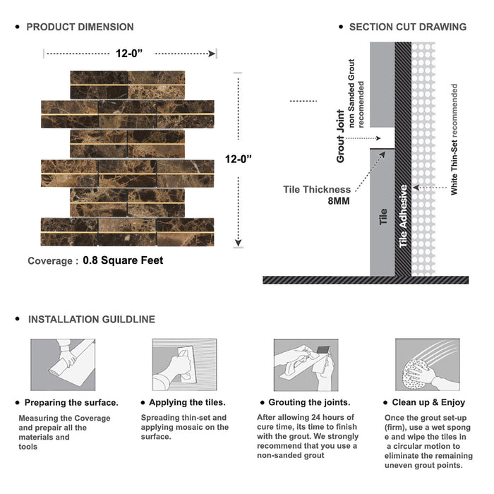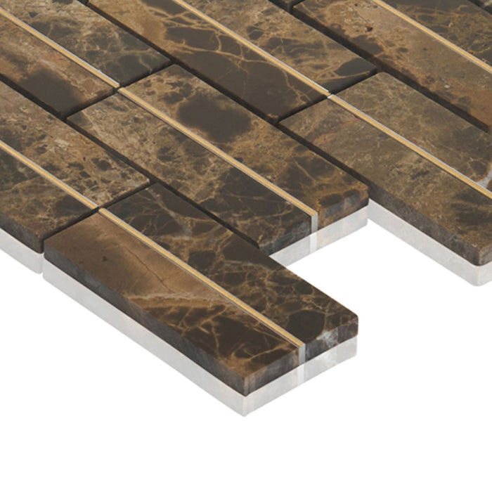 TDH567 Brown Emperador Gold Metal Trim Mosaic Tile