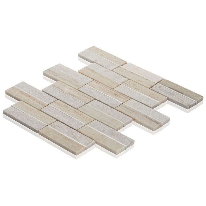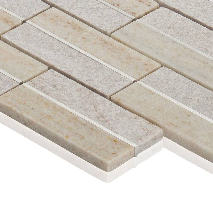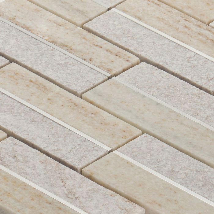 TDH569 Gray Quartzite Silver Metal Trim Mosaic Tile